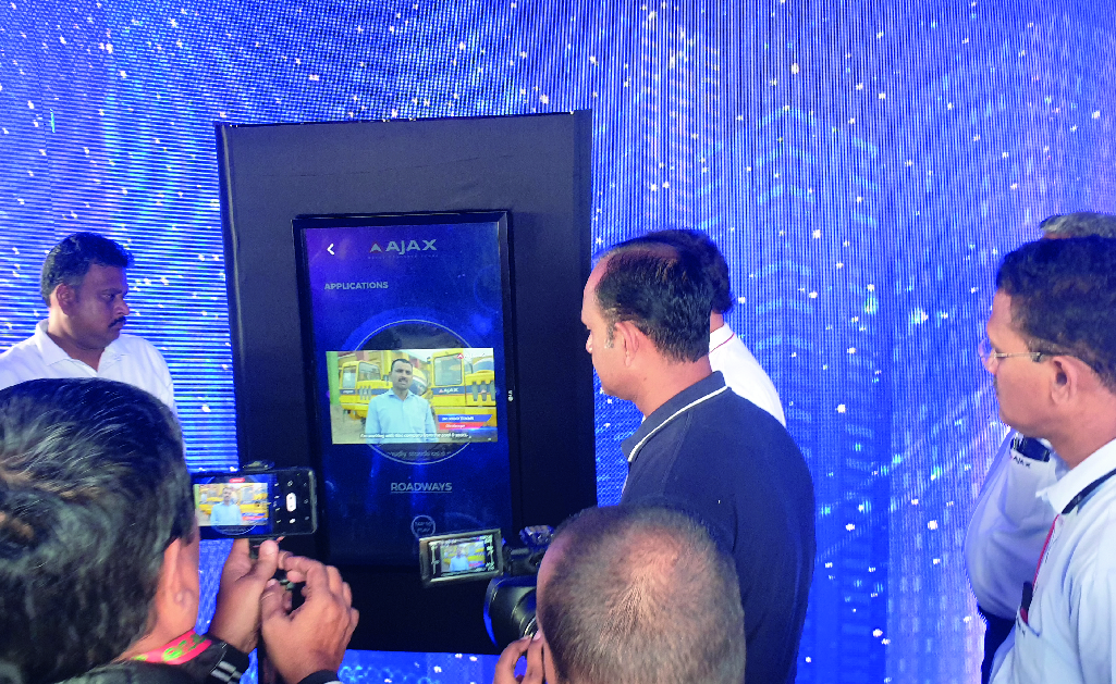 We created this unique Immersive tunnel for AJAX Engineering at MEGACON 2023 . 30 feet long Tunnel showcased various products of AJAX in an interactive way . The inauguration of the event was done by the MD of AJAX by taking the key delegates through the tunnel