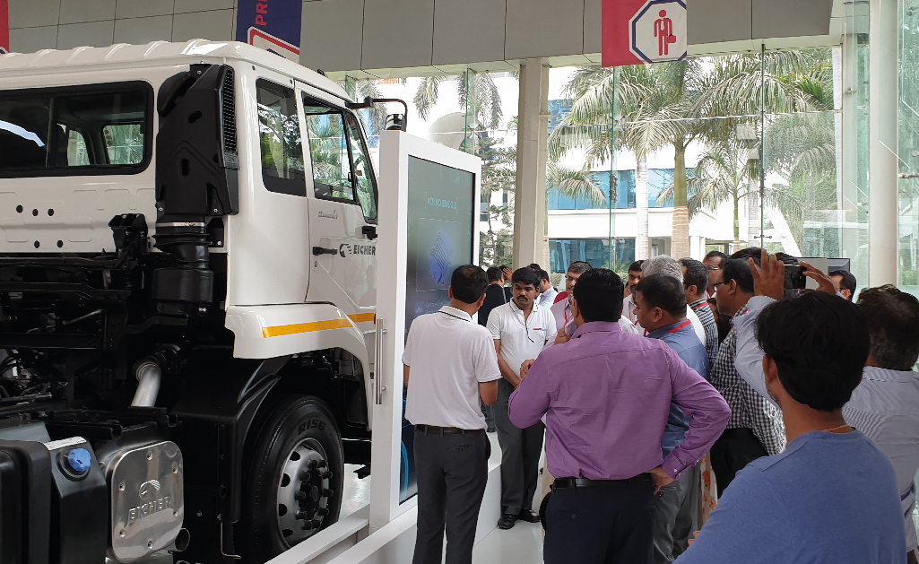 We created Sliding screen technology for Eicher Motors to showcase five of their top of the line Trucks, Pro 6055, Pro 2049 , Pro 2095 and Pro 8031xm. The installation was put up as a permanent fixture in the vehicle display centre in the Eicher pithampur plant in Indore (Madhya pradesh , India)