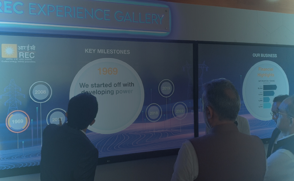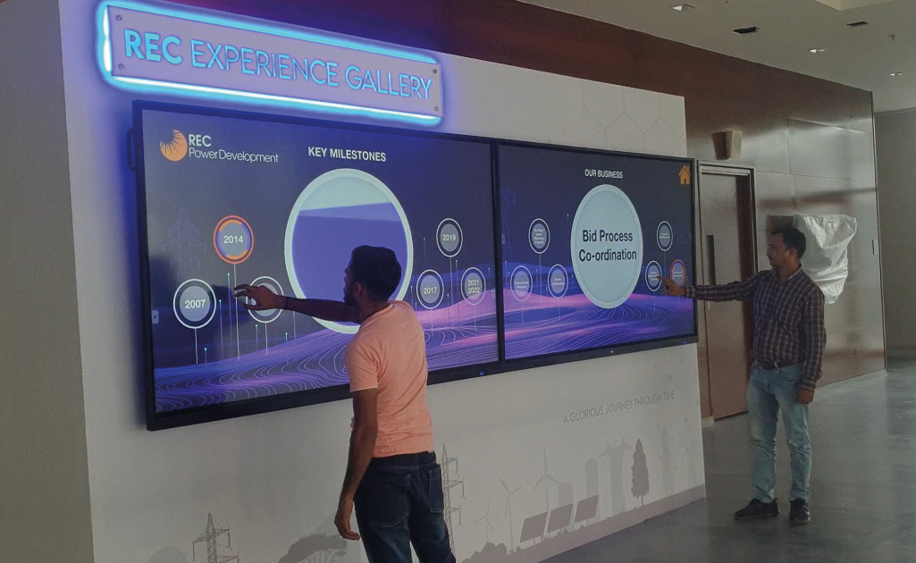 We created a huge Multitouch wall to showcase the achievements and milestones of REC and PDCL . Multitouch wall had sections each of REC and PDCL , with each section having 10 touch points