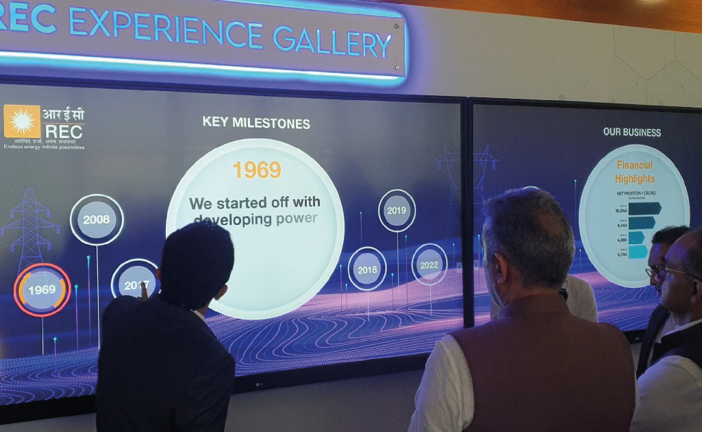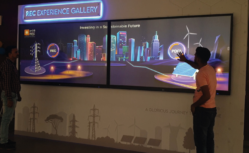 We created a huge Multitouch wall to showcase the achievements and milestones of REC and PDCL . Multitouch wall had sections each of REC and PDCL , with each section having 10 touch points